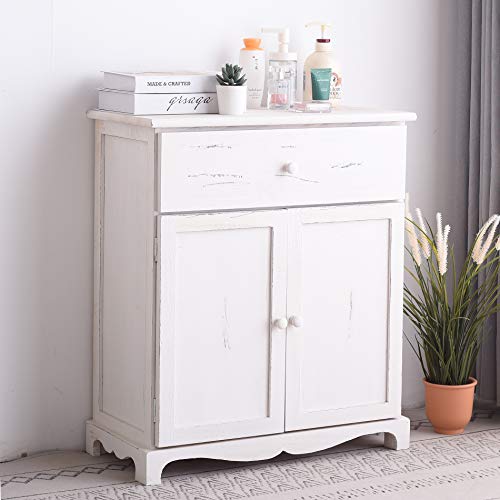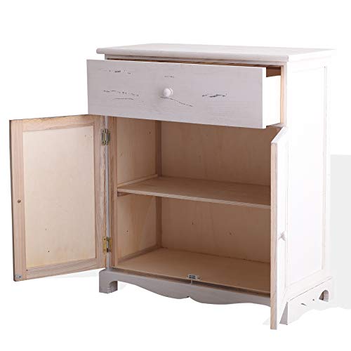 Rebecca Mobili Credenza bianca, mobile multiuso shabby, 1 cassetto 2 ante, legno paulownia, stile shabby vintage, cucina salotto ingresso - Misure: 70 x 60 x 30 cm (HxLxP) - Art. RE4464