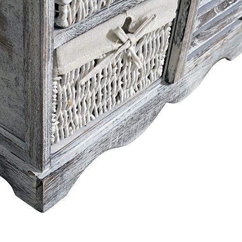 Rebecca Mobili Credenza con 4 casetti 1 anta, mobile multiuso shabby bianco e grigio, legno di paulownia e vimini, vintage, cucina e bagno - Misure 64 x 60 x 30 cm (HxLxP) - Art. RE4043
