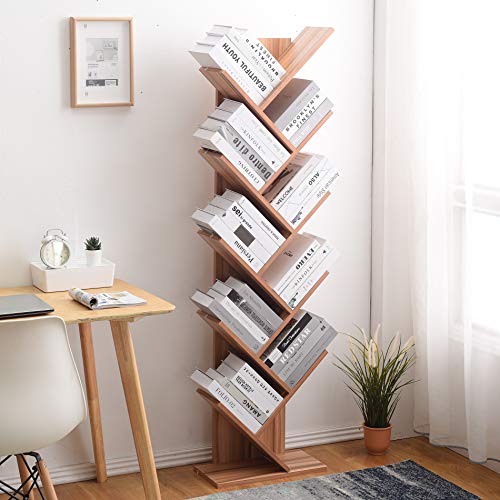 Rebecca Mobili Libreria cameretta, scaffale di legno per ufficio con 10 mensole, mdf, marrone chiaro, design scandinavo, stile moderno - Misure: 160 x 44,5 x 22 cm (HxLxP) - Art. RE4797