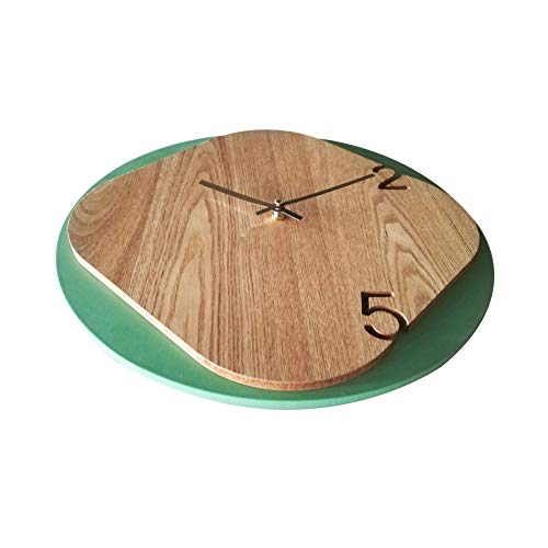Rebecca Mobili Orologio scandinavo da arredo, Verde, Legno, analogico, per Soggiorno cameretta - Misure Ø 40 cm x P 5 cm - Art. RE6240