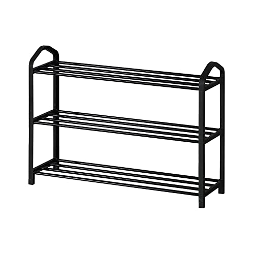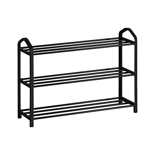 Rebecca Mobili Scarpiera Scaffale Slim, Scaffale Portascarpe Stretto, Ferro Plastica, Nero, Per Ingresso Bagno - Misure: 44 x 62,5 x 19 cm (HxLxP) - Art. RE6747