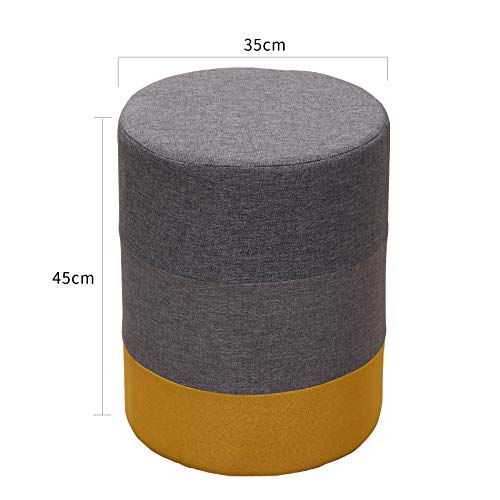 Rebecca Mobili Pouf Tondo, Sgabello imbottito Legno e Tessuto, Giallo Grigio, Stile Moderno, Soggiorno Camera - Misure 45 x 35 x 35 cm (HxLxP) - Art. RE6292