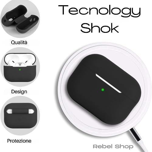 Rebel Shop Cover Airpods pro Compatibile in Silicone di Diversi Colori - Custodia Antiurto con Moschettone (Nero)