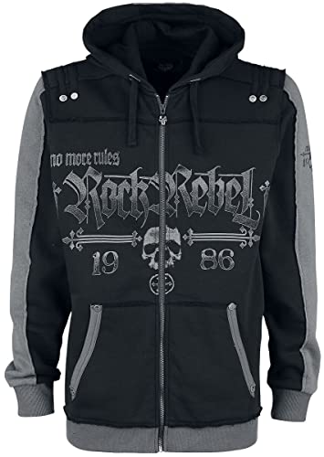 Rock Rebel by EMP Uomo Giacca con cappuccio nera con stampe di teschi XL