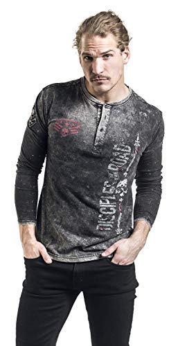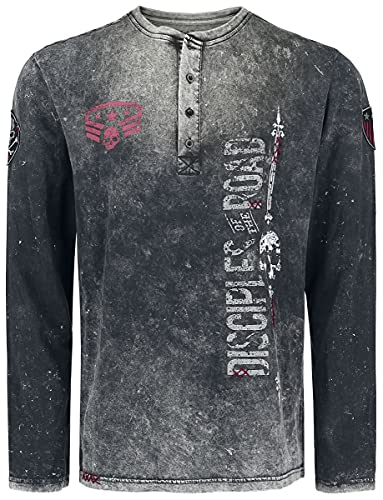 Rock Rebel by EMP Uomo Maglia a Maniche Lunghe Grigio Scuro con Toppe 5XL