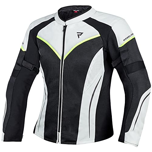 REBELHORN Flux Lady Giacca da moto per donna Materiali durevoli Membrana L-XTR Protezioni per gomiti e spalle Tasche di ventilazione Elementi riflettenti