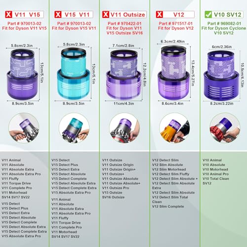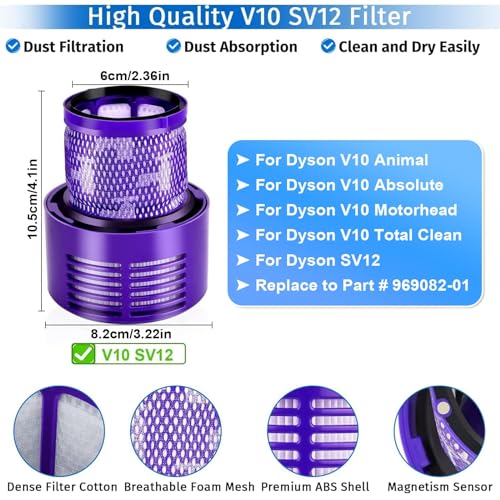 【Filtro ad alta efficienza】Filtro V10 Fluff realizzato con materiali ad alta resistenza ed ecocompatibili, il prodotto è in base alle dimensioni originali per garantire una maggiore potenza di aspirazione. Filtro H12 Hepa V10 Absolute può rimuovere il 99,97% di polvere e sporco. Filtri per dyson scopa elettrica V10 animal migliora la qualità dell'aria in casa e garantisce una migliore aria fresca e un ambiente di vita più sano, particolarmente utile nelle famiglie con bambini,animali o fumatori.