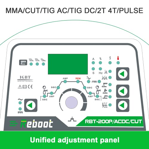 Reboot Saldatrice TIG AC/DC CUT 200A Saldatrice alluminio con pedale ad impulsi 200A 230V Inverter IGBT TIG AC/Tig DC e taglio plasma Saldatrice MMA completamente digitale