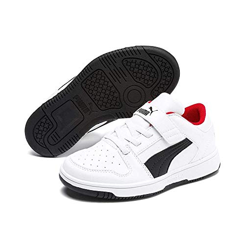 PUMA Puma Rebound Layup Lo SL V PS, Sneakers, Unisex - Bambini e ragazzi, Puma White/Puma Black/High Risk Red, 32 EU