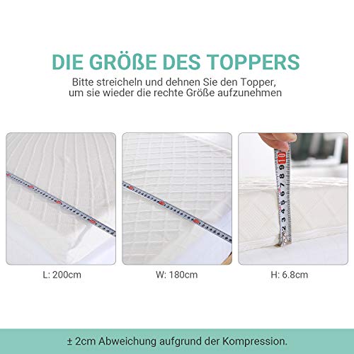 Recci 100% puro, Originale RG50 Memory Foam Topper 180 x 200 cm, Coprimaterasso viscoelastico per letto a molle o come coprimaterasso
