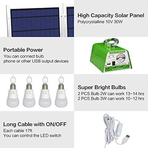 Il più recente pannello solare pieghevole - YINGHAO Kit di illuminazione per esterni e pannelli solari 30W con alimentazione portatile 5 Caricabatterie solare USB per telefoni cellulari 4 LED Lampadina come luce di