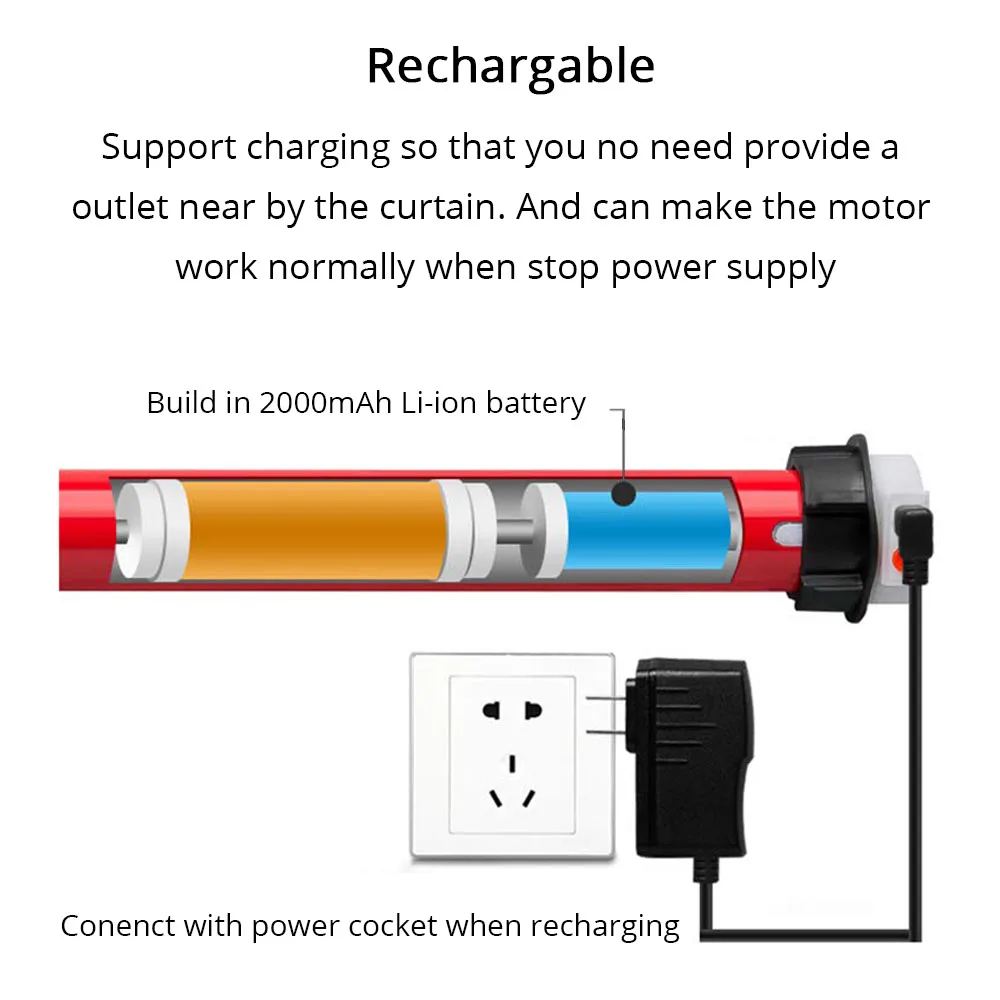 Rechargable Roller Blind Motor With Adapter For 38mm Motorized Electric Roller Blind Shade RF Remote Control Work with Broadlink