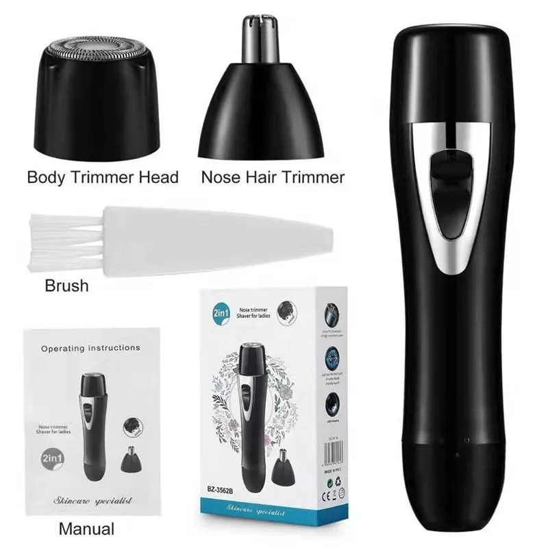 USB Rechargeable 2 In 1 Lady Shaver Epilator Electric Mini Shaving Nose Hair Device