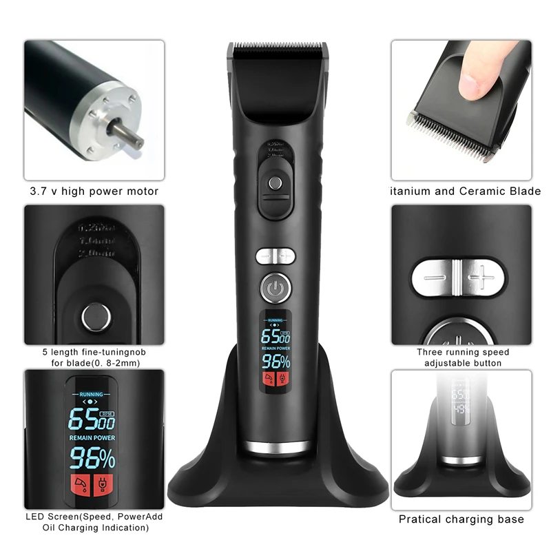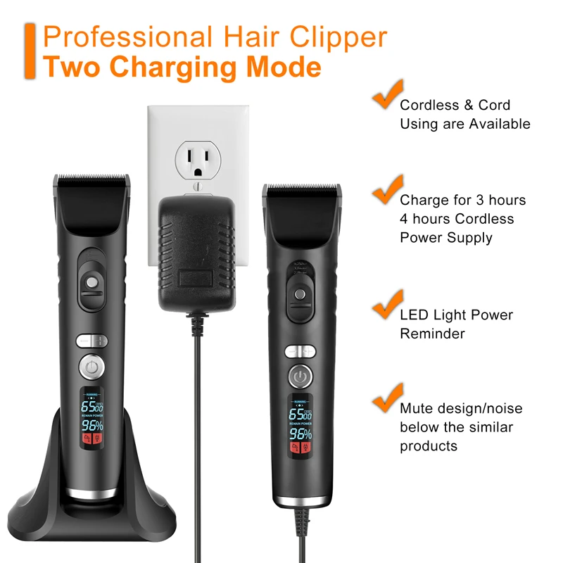 Rechargeable Hair Trimmer for Men Cordless Electric Clippers Hair Cutting Kit with 8 Guide Combs Including Charging Dock