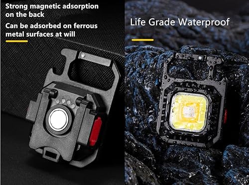 Rechargeable COB Waterproof Portable Led Work Light,800 Lumens 7 Light Modes Pocket Flashlight,Mini Keychain Light with Folding Bracket Bottle Opener and Magnet Base for Walking and Camping,Emergency.