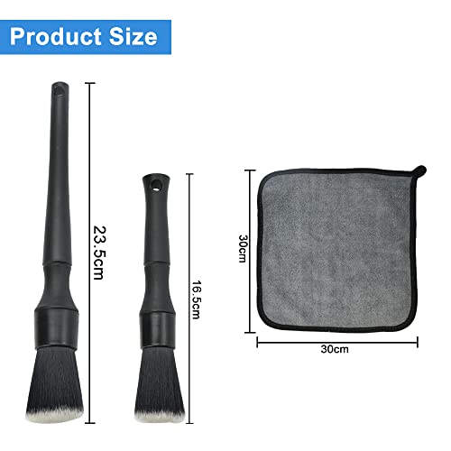 [Pratico set di pennelli per auto con dettagli] - La confezione contiene 2 spazzole per dettagli e 1 panno per la pulizia dell'auto, ampiamente utilizzato per pulire le aree interne ed esterne di diversi tipi di auto e aiutano a risolvere diversi dettagli come cruscotti, finestre e condizionatori d'aria problemi di pulizia con le aperture. Può essere utilizzato anche per pulire porte e finestre, computer, fotoc
