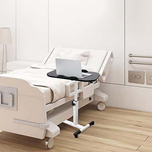 Rechebon Piccola scrivania con ruote, tavolino regolabile in altezza,desktop può essere ruotato, tavolo del computer per letto e divano Nero