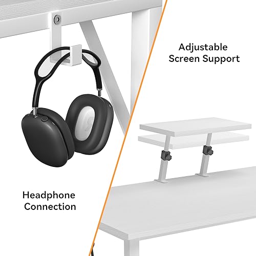 【Resistente】La scrivania per computer è realizzata in materiale rigido HDF spesso 16 mm e un telaio spesso in metallo opaco. Inoltre, ci sono supporti triangolari in metallo che rendono la scrivania molto stabile e durevole