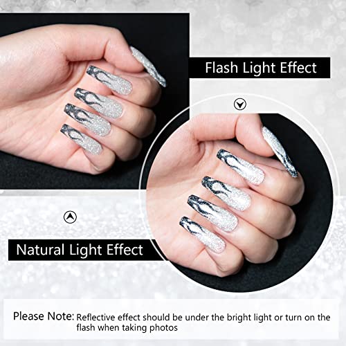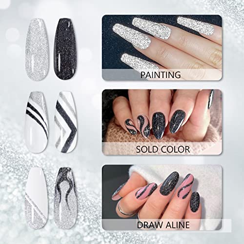 Rechoo 2pcs Liner Semipermanente Unghie, 8ml Nero & Argento Brillantini Smalto Gel Unghie, Gel Semipermanente Unghie Reflective Glitter, Liner Nail Gel Polish for Painting, Kit per Manicure da Salone