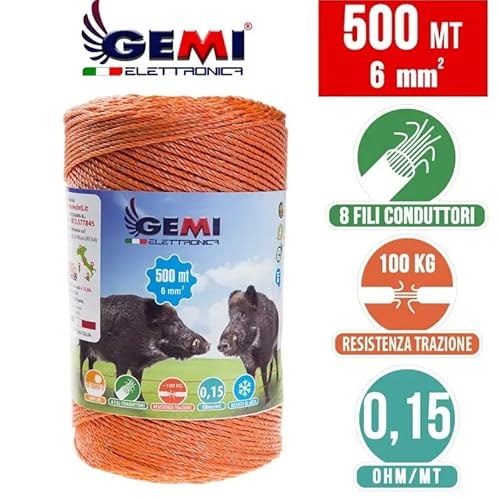 Filo a 8 Fili Conduttori - Sezione 6 mm² da 500 metri - Resistente ai raggi UV. Resistività: 0,15 ohm / h