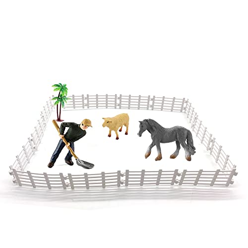 Recinto della fattoria Recinto per Animali Fattoria 50 pezzi accessori del recinto dello zoo, mini recinto del giardino, recinto di plastica della fattoria mini recinto del cavallo recinto (bianco)