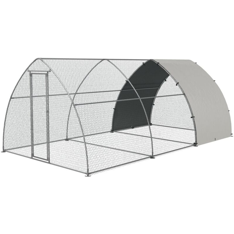 Recinto Recinto per Galline per 14-18 Animali con Porta Bloccabile 3x5,6x2,2 m in Acciaio Argento Fai spazio alle tue galline con questo pollaio ! Spazioso e alto, questo recinto per galline può accogliere fino a 18 polli in tutta comodità. Il telaio in acciaio galvanizzato assicura resistenza all'uso e alla ruggine. Dotata di tettuccio in tessuto Oxford, la gabbia per galline offre anche riparo dal sole e dalla pioggia. Regala uno spazio sicuro alle tue galline con il nostro pollaio. Specifiche Tecniche Tettuccio di protezione da sole, raggi UV e pioggia Recinto per galline spazioso, ideale anche per anatre e conigli Struttura alta che consente di entrare comodamente in piedi Telaio in solido acciaio galvanizzato per una lunga durata Filo metallico trattato con un processo di immersione Porta con sistema di blocco per tenere le galline al sicuro Ideale da abbinare a un pollaio prefabbricato in legno Montaggio richiesto Caratteristiche Tecniche Colore: Argento Materiale: Acciaio