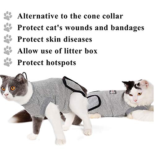 Tuta RC Cat Gear Recovery per ferite Addominali o malattie della Pelle, E-Collar Traspirante Camicia Cat in Cotone Alternativa Dopo ferite chirurgiche (S, Grigio)