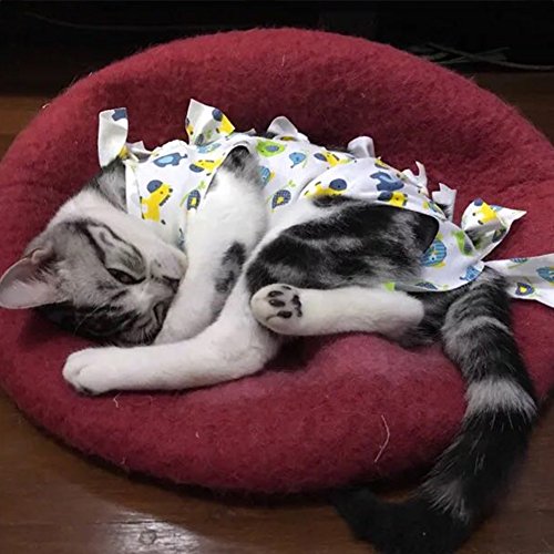 Alcuni gatti possono rimuovere questo vestito, è successo al nostro gatto l'ultima volta che abbiamo testato questo vestito, allacciare il cinturino avrebbe risolto il problema. Puoi tagliare la cinghia per adattarla meglio al tuo gatto.