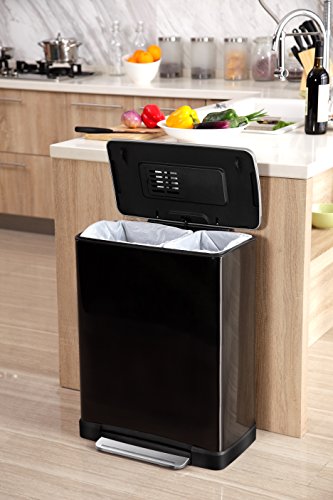 EKO Recycle E-Cube - Pattumiera a pedale, in metallo, 34,5 x 50 x 65 cm, 28 + 18 litri, colore: Nero