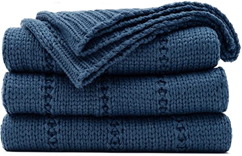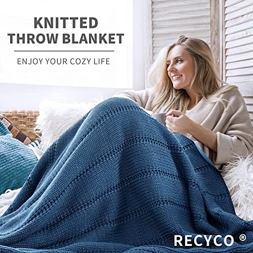 RECYCO Coperta a maglia, 152 x 203 cm, morbida, calda, lavorata a maglia, per letto, divano e divano, 150 x 200 cm, blu scuro