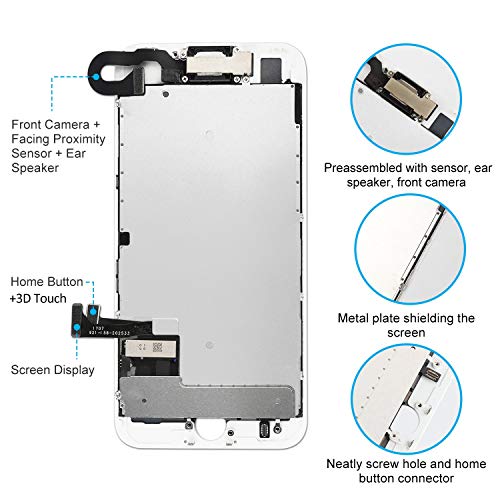 Recyco Schermo per iPhone 7 Bianco (4,7 Pollici) Display LCD Touch Screen Digitizer Parti di Ricambio (con Fotocamera, Altoparlante, Sensore Flex) Utensili Inclusi