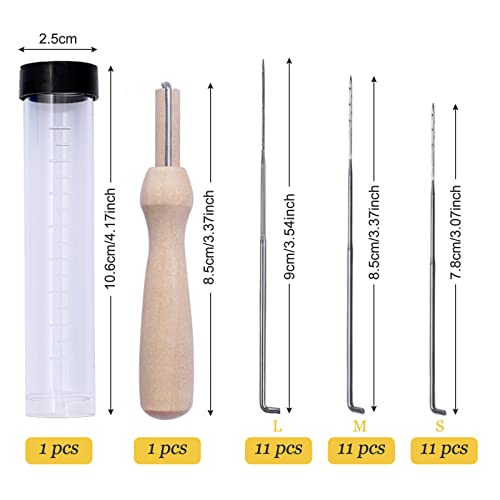 Redamancy Set di aghi in feltro, 35 pezzi, 3 misure, aghi in feltro con manico in legno e 1 bottiglia trasparente, kit di avviamento, per principianti