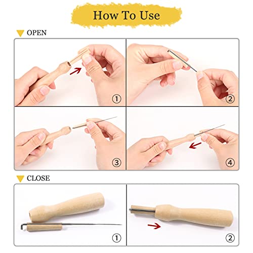 Facile da sostituire: Solo bisogna rimuovere il cilindro dal manico e mettere l'ago nella scanalatura per installare e sostituisce facilmente, l'ago e il manico sono stretti, gli aghi per lana feltro è stabile durante l'uso. L'ago può inserire nel manico, per la sicurezza.