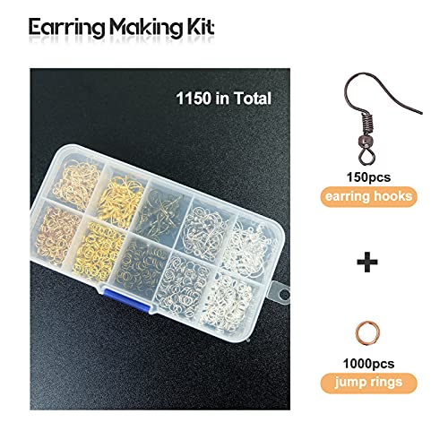 Accessori sufficienti: Riceverai 1150 pezzi di accessori per la creazione di gioielli, tra cui: 1000x anelli di salto e 150 x ganci per orecchini, la grande capacità è sufficiente per soddisfare le vostre esigenze di produzione