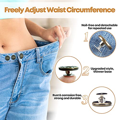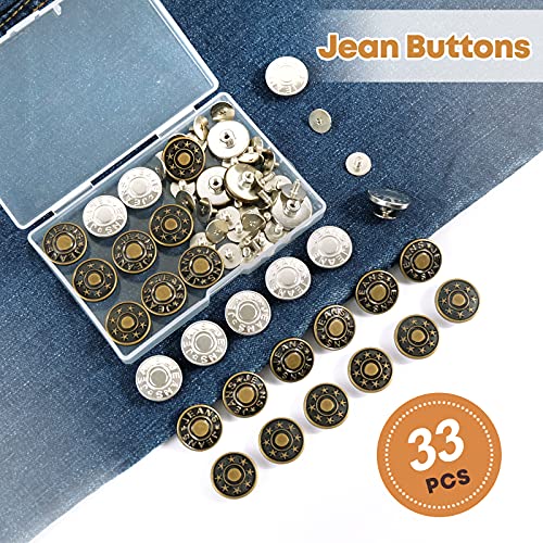 Redamancy 33 Pezzi Bottoni Jeans, 17mm Bottoni Jeans Regolabili di Ricambio Instant Buttons in Metallo Bottoni Per Jeans E Creazioni Fai Da Te (Bronzo, Argento 3 Modelli)