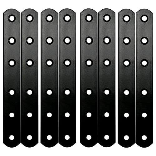 RedBee 8 staffe piatte dritte, spessore 3 mm, piastra rammendamento per legno, metallo nero, 157 x 20 mm, per scaffali, librerie, letto (S-157-20-3-8p-2)