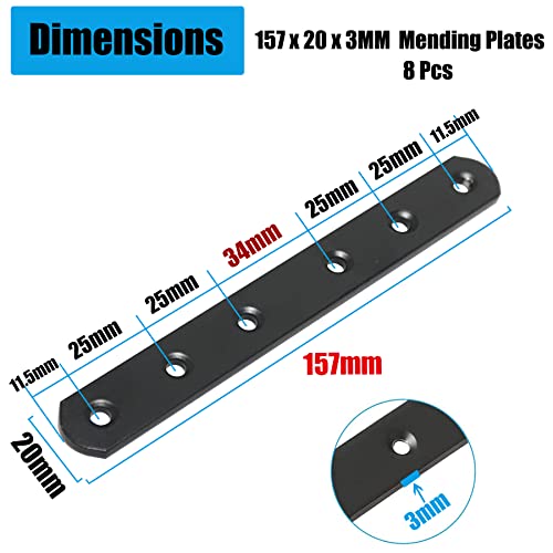 Dimensioni delle piastre in metallo: 157 x 20 x 3 mm (lunghezza x larghezza x altezza). Diametro del foro svasato: 5 mm. Quantità del foro: 6 fori