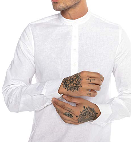 Redbridge Camicia da Uomo Maglia in Lino Casual Stile Tunik-Straight Bianco XXL