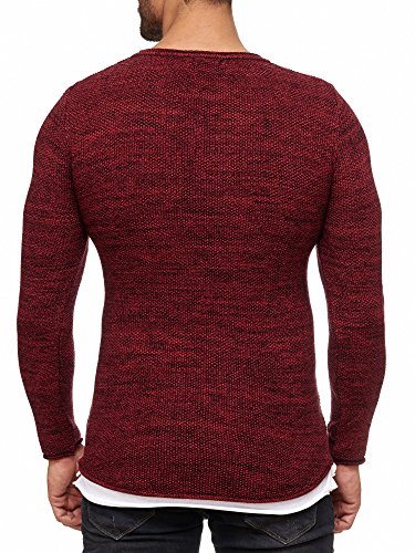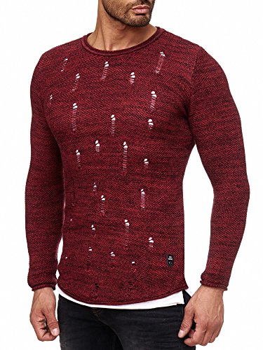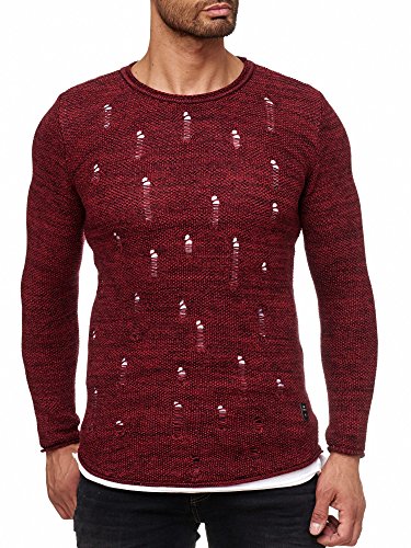 Redbridge Maglioncino da Uomo con Scollo Rotondo Maglietta in Stile Destroyed Cotone Manica Lunga Rosso M