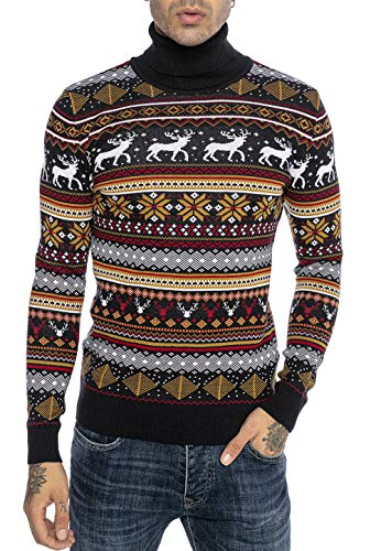 Redbridge Maglione da Uomo Stile Norvegese Pullover con Collo Alto in Cotone Slim Fit Blu S