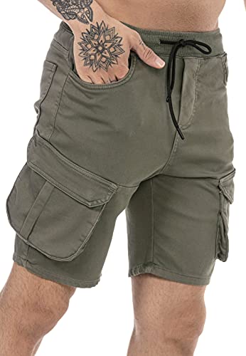 Redbridge Pantaloncini da Uomo Cargo-Pants con Tasche Cotone Casual Verde L