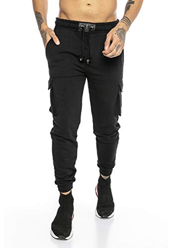 Redbridge Pantalone da Tuta Joggers Sweat-Pants Stile Cargo Premium Silver Skull Nero XL