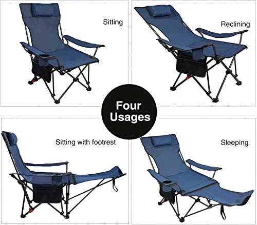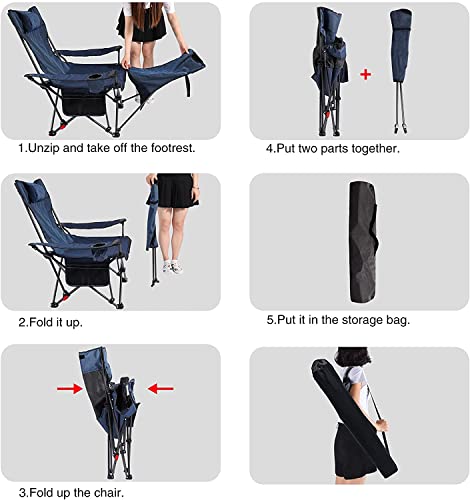 REDCAMP Sedia da campeggio con poggiapiedi rimovibile, sedie da campeggio pieghevoli portatili per adulti, blu con schienale in tessuto