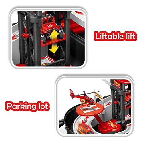 RedCrab Garage Macchine per Bambini Pompiere Temi Multiuso Zaini Set Autostradale con Aeroporto Ascensore Aereo Giocattoli Autopompa Parcheggio Macchinine per Bambini Dai 3 4 5 6 7 8 9 10 11 12 Anni