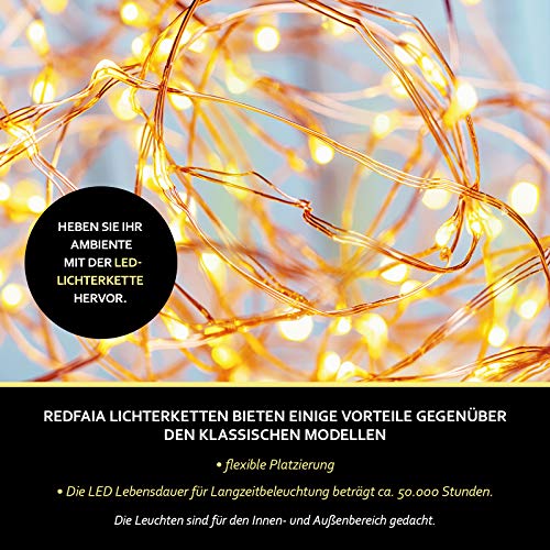 REDFAIA - Catena luminosa a LED per interni ed esterni, senza cablaggio, da appendere, luce bianca calda, porta USB da 5 m, inclusa torcia
