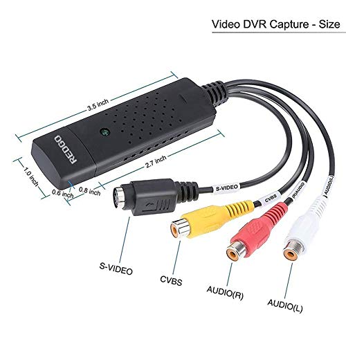 Redgo, convertitore da VHS a DVD, scheda di acquisizione audio-video con collegamento USB 2.0, per conversione digitale di video da VHS, VCR, TV, AV al PC con Windows 2000, Windows Vista, Windows 7, Windows 8, Windows 10, Windows XP e Mac