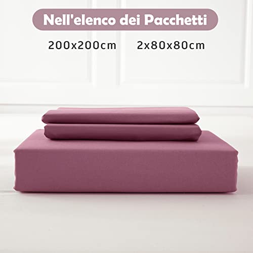 REDKEY Copripiumino Matrimoniale in Microfibra,Set Completo Copripiumino Matrimoniale con 2 Federe Cuscini Letto 200x200 cm + 2 Federe 80x80 cm Rosa Loto