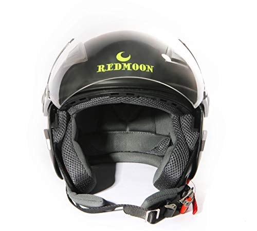 RedMoon Casco Moto Demi Jet, Omologato ECE 22-05, con doppia Visiera Antigraffio e Parasole per uso su scooter e motociclette (Grey, XL)
