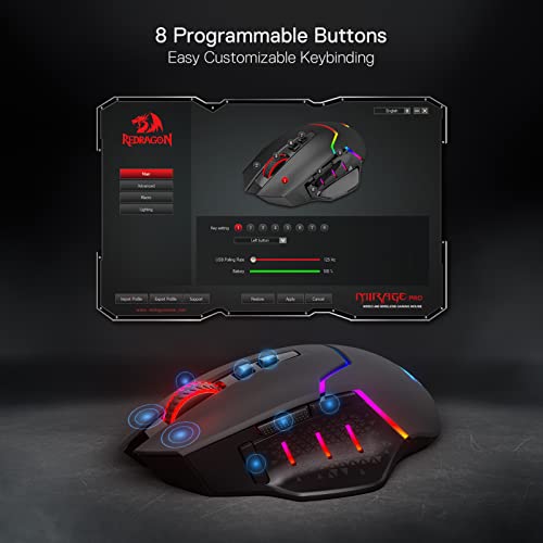 Redragon Mouse da gioco wireless M690 PRO 8000 DPI cablato/wireless con pulsante di accensione rapido, 8 tasti macro, design ergonomico per PC/Mac/Laptop