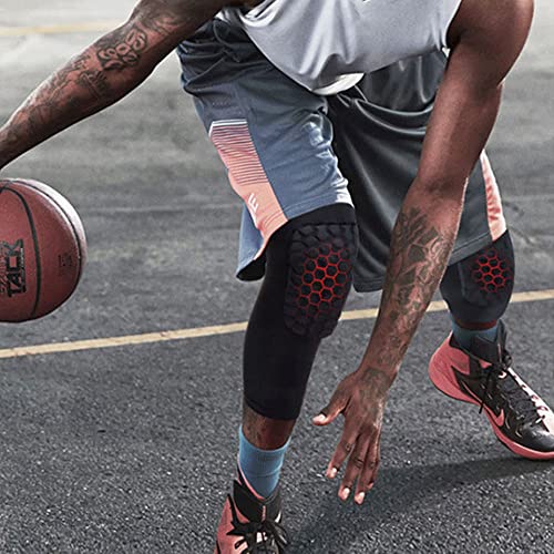 REDSHORE Pantaloni Sportivi da Basket ¾ Pantaloni a Compressione con Ginocchiere, Collant Anti-collisione Leggings Supporto Protettivo per Bambini all'aperto - Uomini Adulti (S,Black)